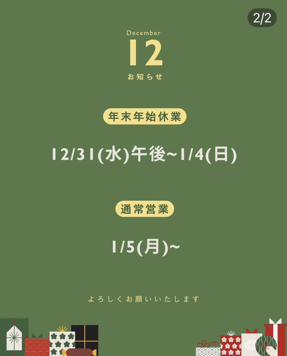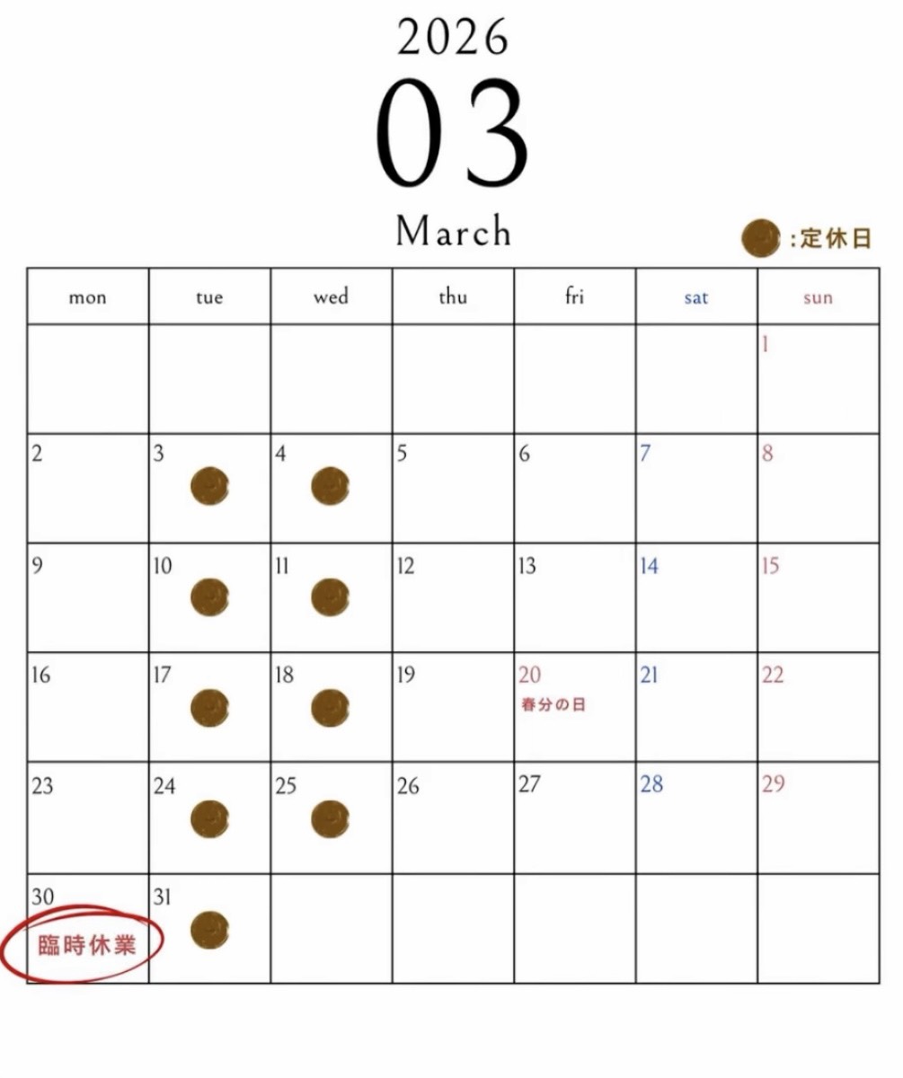 定休日 : 火・水曜日